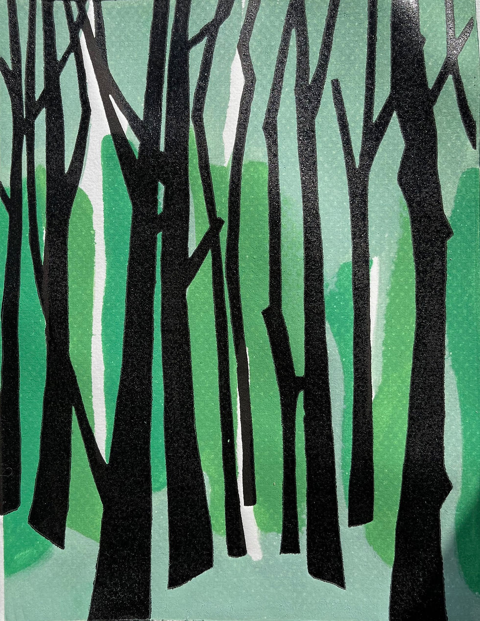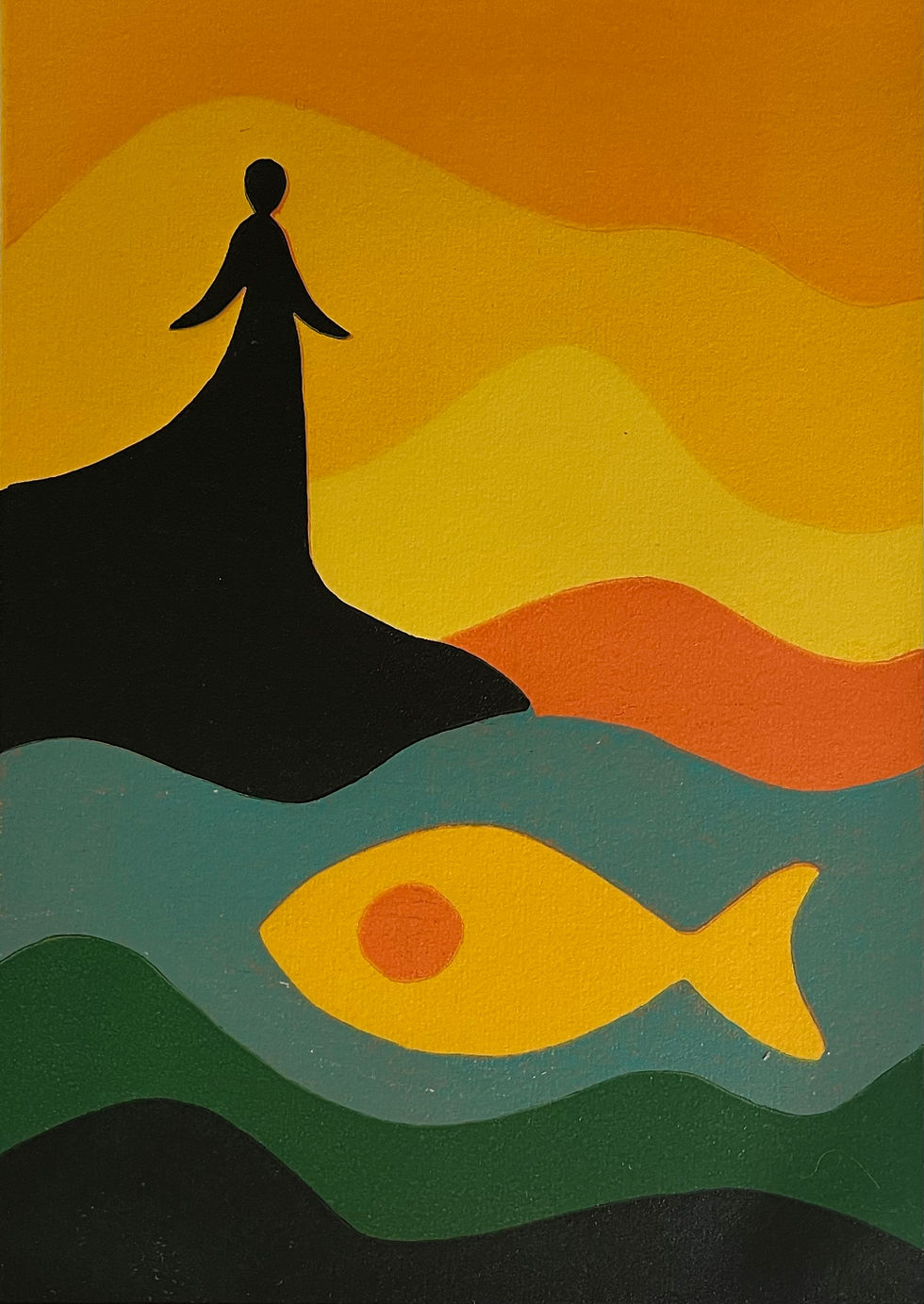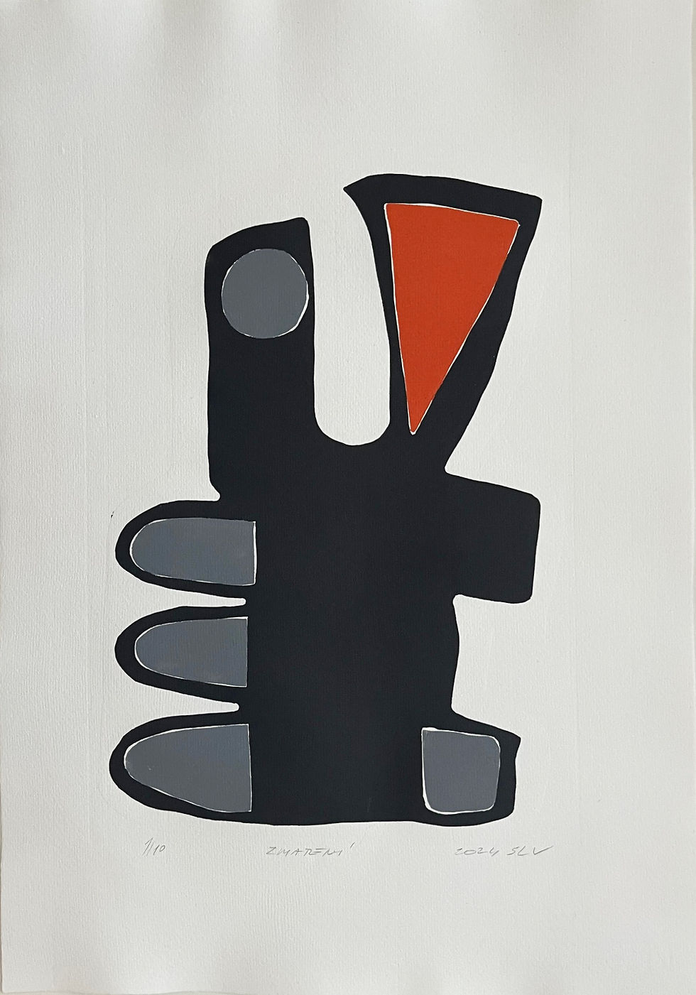 Byli jste někdy na Lanzarote? Já ne, ale mají to tam prý krásné. Ostrov a jeho barvy mě inspirovaly k této šestibarevné grafice. Je to soutisk, každá barva se tiskne, až když ta předcházející zaschne. Je to krásný proces. Matrice je formátu A4.